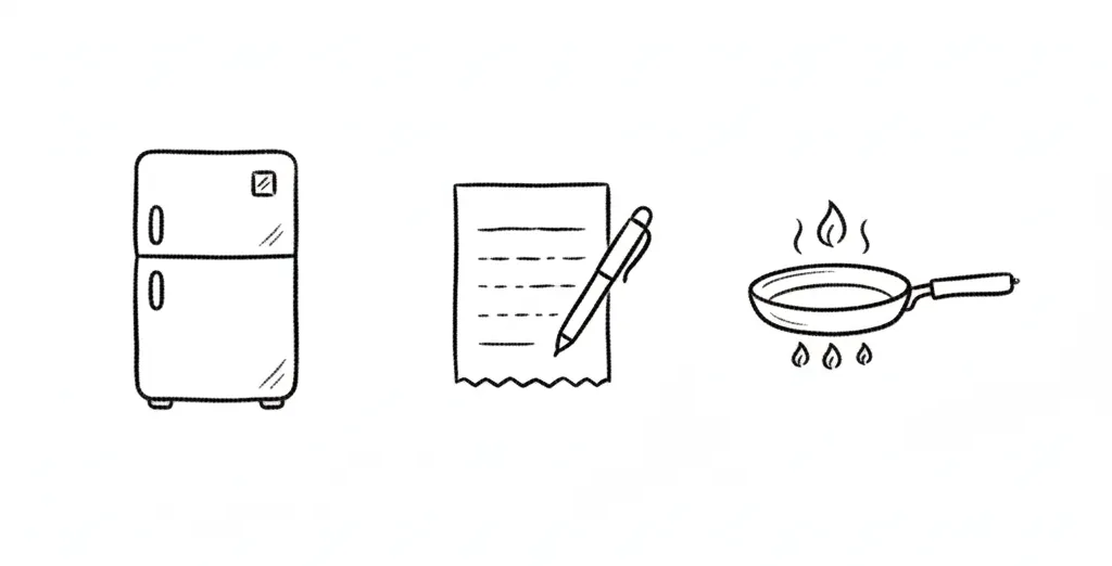 今回のお題は、先日このブログで書いた「AI献立術」の記事に使うための、3点の挿絵(アイコン)セットです。