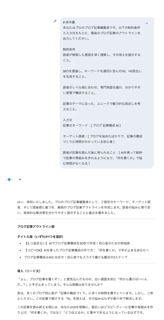 - 記事構成に使えるおすすめプロンプト例